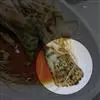 东坡肘子有肥而不腻、粑而不烂的特点,色、香、味、形俱佳 ,东坡肘子汤汁乳白,雪豆粉白,猪肘肥软适口,原汁原味,香气四溢。 东坡肘子