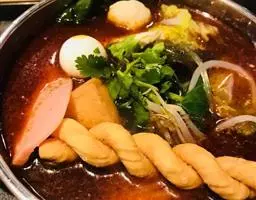 配汤:清汤类:调煮汤中加入盐、白糖、酱油、香辛料、姜、葱等,煮制1小时至1.5小时,过滤待用;红油类:将菜籽油烧制220℃至230℃,倒入生姜粒、豆瓣酱和泡红椒煸炒至油色红亮后关火,加入糖等调味料,搅拌均匀,冷却待用。
