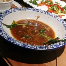 特色传统名菜,属川菜系。主料瘦黄牛肉。辅料豆芽、鸭血、肉汤、莴笋或者其他蔬菜、粉丝。调料葱、精盐、…