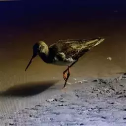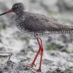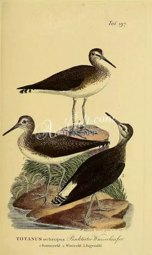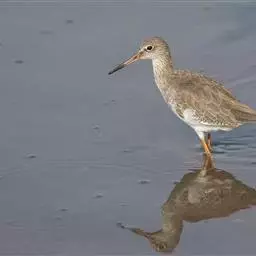 红脚鹬:体长28厘米,上体褐灰,下体白色,胸具褐色纵纹。飞行时腰部白色明显,次级飞羽具明显白色外缘。…