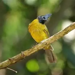 黑冠黄鹎:体长18-21厘米,是一种中等体型偏黄色鹎。整个头、颈、颏、喉黑色,头顶有显著直立的羽冠,…