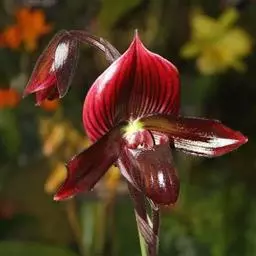 彩云兜兰(学名:Paphiopedilum wardii Summerhayes)是兰科、兜兰属的地生植物,是国家一级保护植物。 地生。叶基生,数枚至多枚,带形、革质。花葶从叶丛中长出,花苞片非叶状;子房顶端常收狭成喙状;花大而艳丽,有种种色泽;中萼直立,花粉粉质或带粘性,退化雄蕊扁平;柱头肥厚,下弯,柱头面有乳突,果实为蒴果。兜兰花比较雅致,色彩比较庄重,色及带有不规则斑点或条纹。花瓣较厚,花朵开放期比较长,12月至次年3月开花。