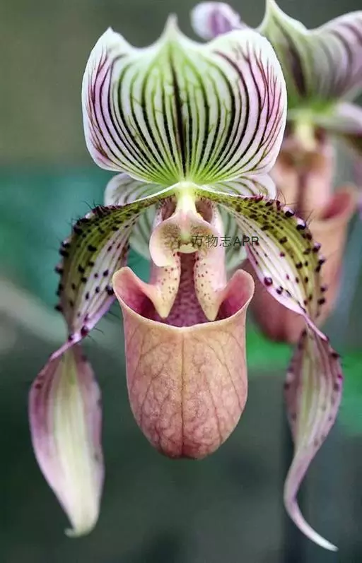 紫纹兜兰 Stein)是兰科兜兰属的地生或半附生植物。叶基生,叶片狭椭圆形或长圆状椭圆形,…