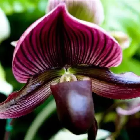 麻栗坡兜兰兰科,兜兰属地生或半附生植物。叶基生;数枚至多枚,叶片带形、革质。花葶从叶丛中长出,…