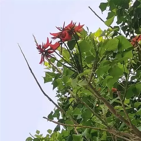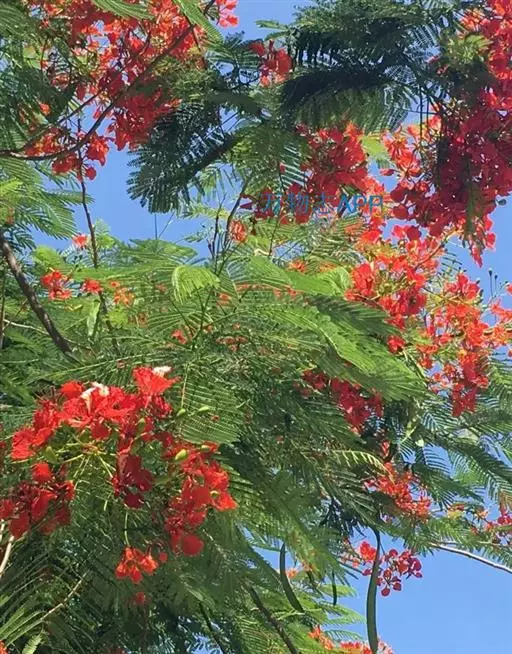 凤凰木(Delonixregia),取名缘于“叶如飞凰之羽,花若丹凤之冠”。花语为:离别、思念、火热青春