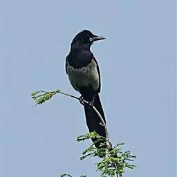 喜鹊:是鸦科、鹊属的一种鸟类。共有11个亚种。体长40-50厘米,雌雄羽色相似,…
