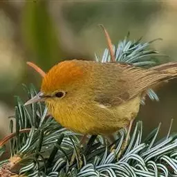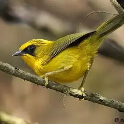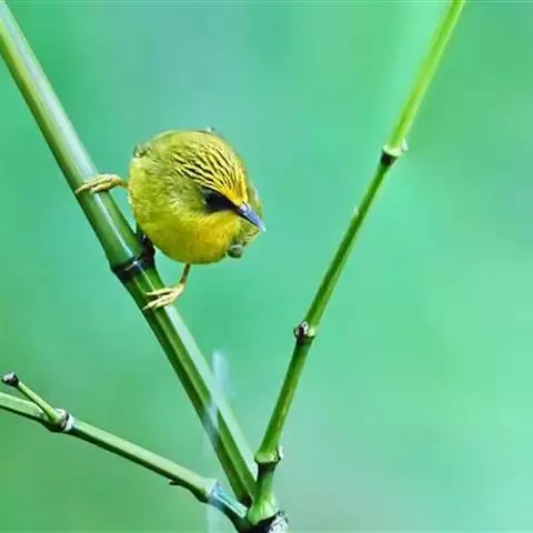 金头穗鹛小型鸟类,体长10~11厘米,是一种黄色小鸟。头顶金黄色有黑色纵纹,眼先黑色,…