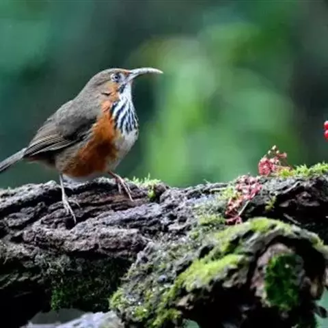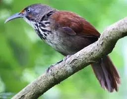 斑胸钩嘴鹛是雀形目、画眉科、钩嘴鹛属的鸟类。体型略大的钩嘴鹛。无浅色眉纹,脸颊棕色。…