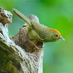红头穗鹛是雀形目画眉科伪穗鹛属鸟类。成鸟额至头顶或至枕部为棕红色;额基和眼先淡灰黄色;眼圈隐隐泛黄白色;颊和耳羽灰黄色缀有橄榄褐色;其余上体连同翼和尾的表面为橄榄绿褐色;飞羽和尾羽暗褐色,外缘沾茶黄色;下体颏、喉和胸浅灰黄色,具细黑羽干纹;腹和尾下覆羽橄榄褐绿色;腋羽和翼下覆羽淡灰黄色;虹膜棕红色;上喙角褐色,下喙暗黄色;脚黄褐色。红头穗鹛分布于亚洲东南部地区;在中国分布于秦岭及以南的广大地区,包括长江流域、华南、华中和西南地区。栖息于山地森林中。常单独或成对活动,有时也结小群或与棕颈钩嘴鹛等其他鸟类混群,在林下灌丛间来回跳跃穿梭。主食鞘翅目、鳞翅目、直翅目、膜翅目、双翅目和半翅目等昆虫,偶食少量植物种实。繁殖期在4-7月,营巢于茂密灌草丛或竹丛中。窝卵数4-5枚,卵白色且具棕斑,雏鸟晚成;雌雄亲鸟轮流孵卵,共同育雏。红头穗鹛为食虫益鸟,被列入中国林业局2000年8月1日发布的《国家保护的