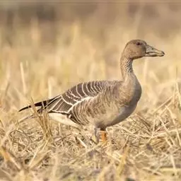 豆雁,雁形目鸭科。成鸟头、颈、背灰褐色,带淡黄色羽缘;尾上覆羽白色,尾羽黑褐色带白端,…