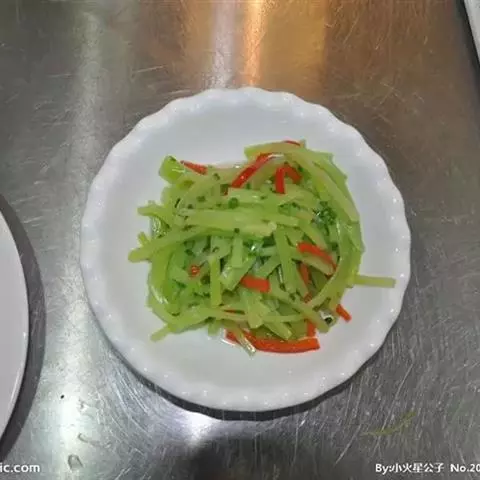 1、猪肝洗净,切成柳叶形薄片,纳碗,加精盐、味精、料酒、湿淀粉等拌匀上浆;