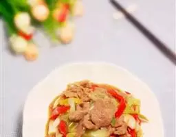5、最后出锅前放入青椒片,翻炒均匀后立即出锅即可。