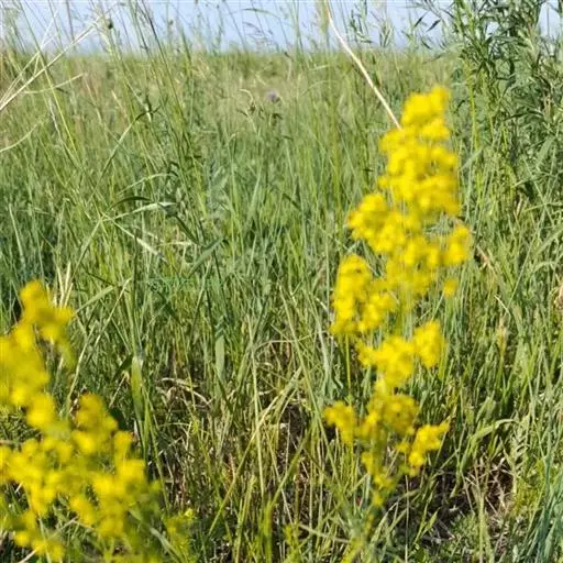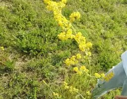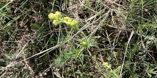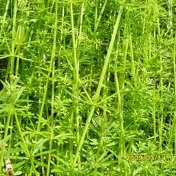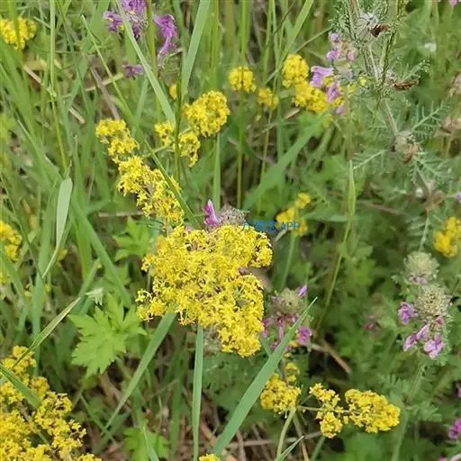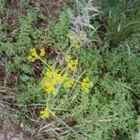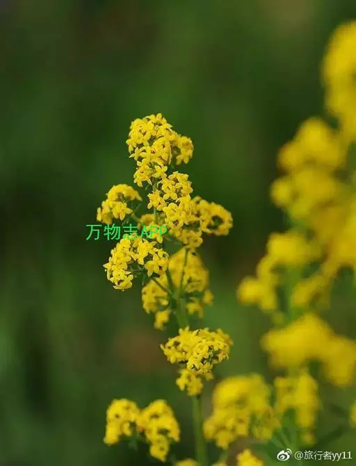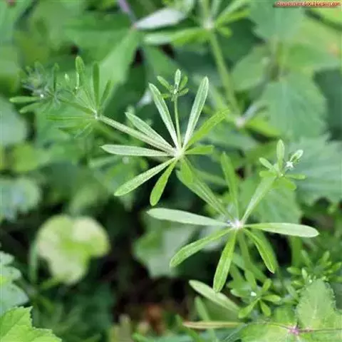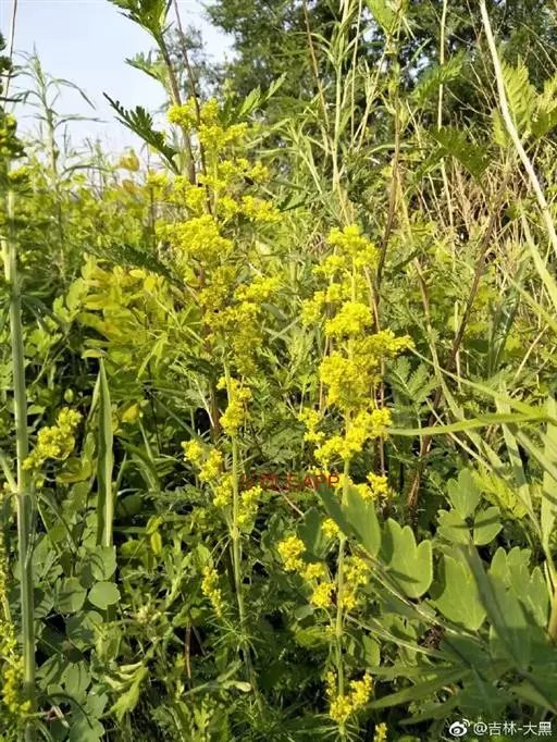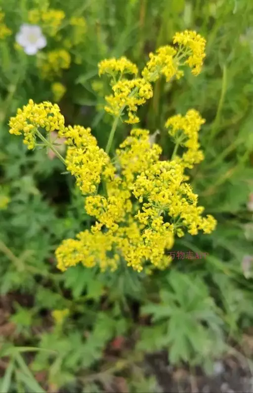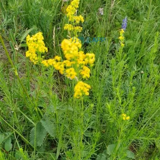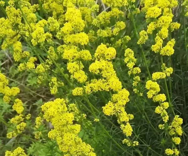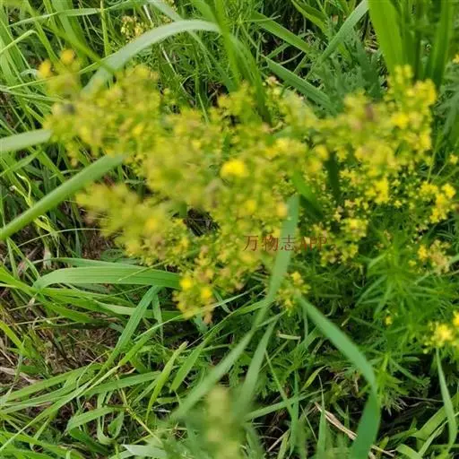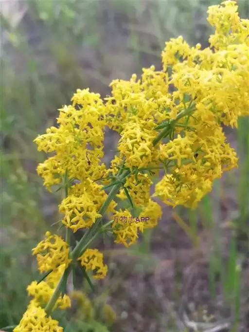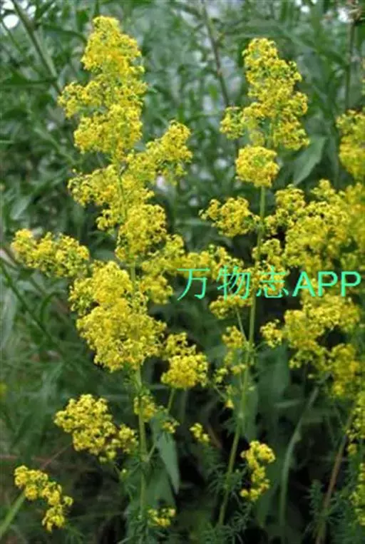 蓬子菜,又名黄牛尾。多年生直立草本。根茎粗短,根圆柱形,粗长而弯曲,稍木质。茎丛生,基部稍木质化,四棱形,幼时有柔毛。叶6-10片,轮生;无柄;叶片线形,长1-5cm,宽1-2mm,先端急尖,上面稍有光泽,仅下面沿中脉二侧被柔毛,边缘反卷。聚伞花序集成顶生的圆锥花序状,稍紧密;花序梗有灰白色细毛;花具短柄;萼筒全部与子房愈合,无毛;花冠辐状,淡黄色,花冠筒极短,裂片4,卵形,雄蕊4,子房2室,花柱2,柱头头状。双悬果2,扁球形,直径约1.8-2mm,无毛。花期6-7月,果期8-9月。