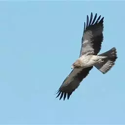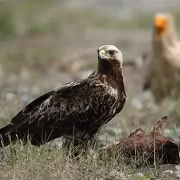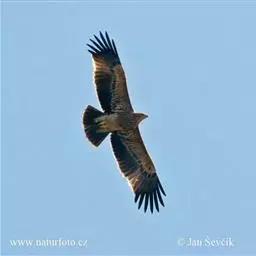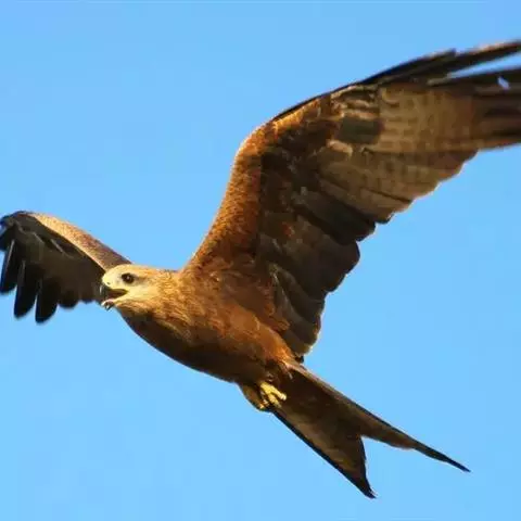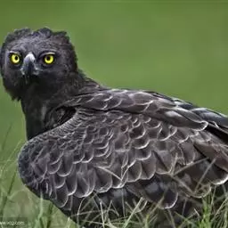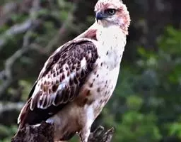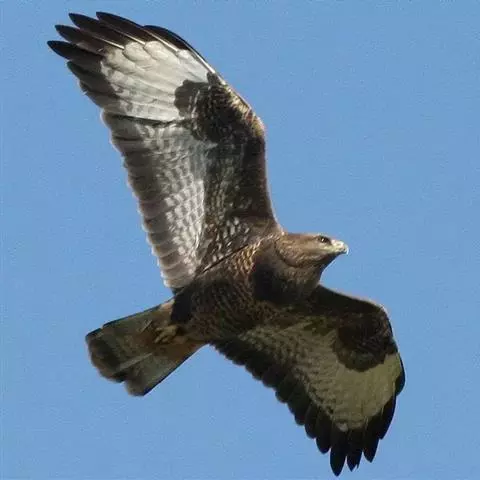 白肩雕:又名御雕,是大型猛禽。体长73-84厘米。体羽黑褐色,头和颈较淡,肩部有明显的白斑,在黑褐…