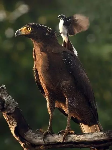 鹰雕,是隼形目鹰科鹰雕属大型猛禽,俗称熊鹰、赫氏角鹰。其上体暗褐色,头后冠羽常竖立起,…