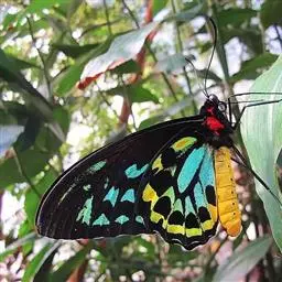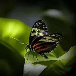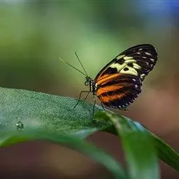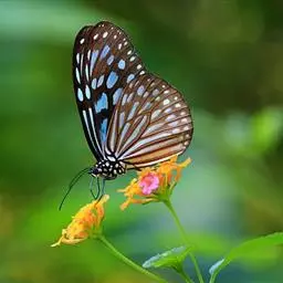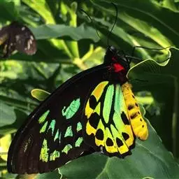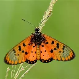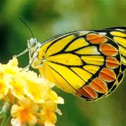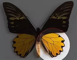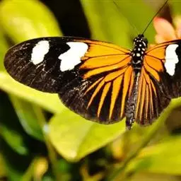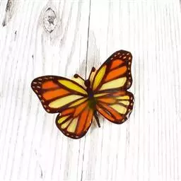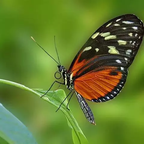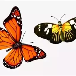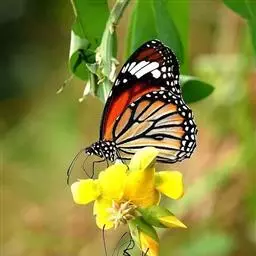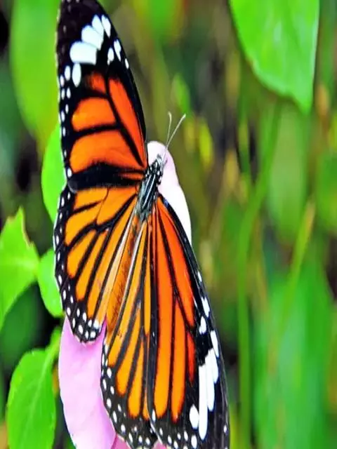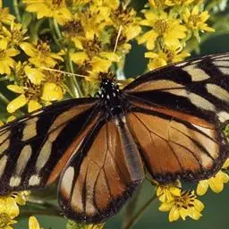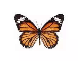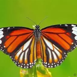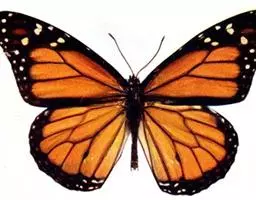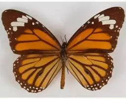 黑脉金斑蝶:翅阔8.6-12.4厘米。雄蝶较雌蝶为大。成年蝶颜色鲜艳,翅膀上有显眼的橙色及黑色斑纹…