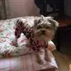 10.如果是幼犬,一定要注意保暖,窝里要铺上衣物,最好用旧的衣袖改成小衣服穿上。