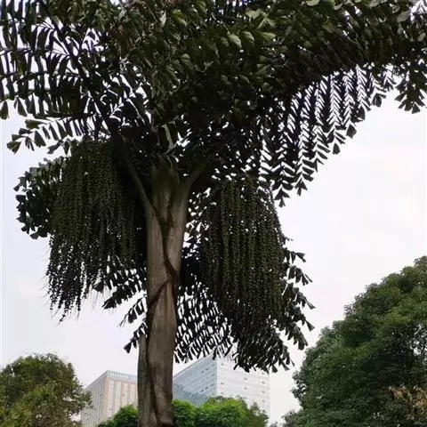国王椰子是棕榈科、国王椰属常绿乔木,高达5-9米,最高可达25米,树干基部直径约80厘米,似椰子。…
