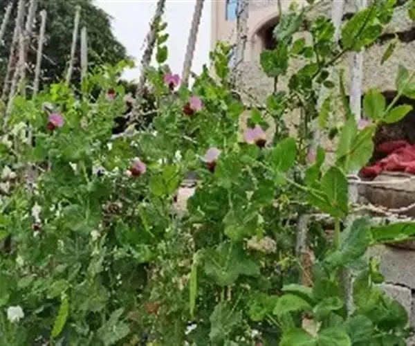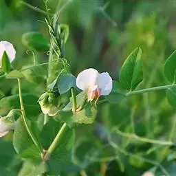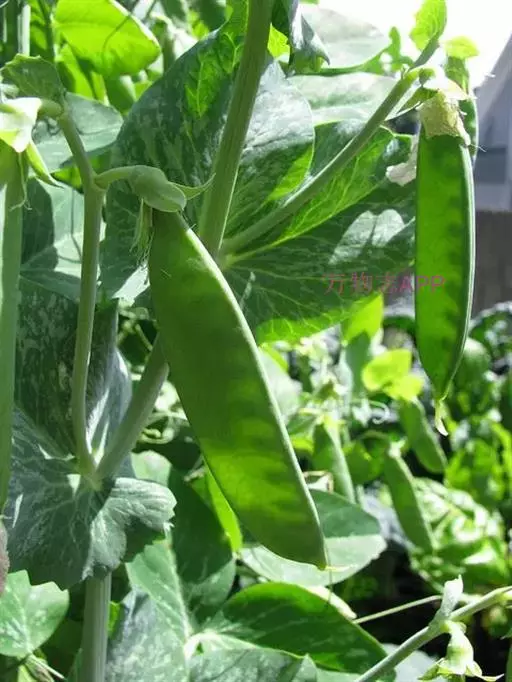 豌豆(学名:Pisum sativum L.)豆科一年生攀援草本,高0.5-2米。全株绿色,光滑无毛,被粉霜。叶具小叶4-6片,托叶心形,下缘具细牙齿。小叶卵圆形;花于叶腋单生或数朵排列为总状花序;花萼钟状,裂片披针形;花冠颜色多样,随品种而异,但多为白色和紫色。子房无毛,花柱扁。荚果肿胀,长椭圆形;种子圆形,青绿色,干后变为黄色。花期6-7月,果期7-9月。