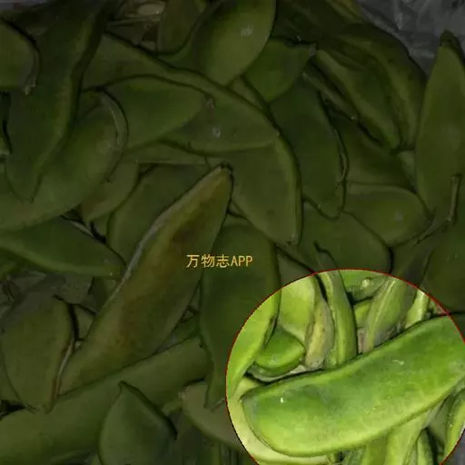 子房无毛,花柱扁,内面有髯毛。荚果肿胀,长椭圆形,长2.5-10厘米,宽0.7-14厘米,顶端斜急尖,背部近于伸直,内侧有坚硬纸质的内皮;种子2-10颗,圆形,青绿色,有皱纹或无,干后变为黄色。花期6-7月,果期7-9月。
