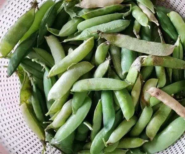 适时收获:根据食用方式决定收获时间。一般粒用豌豆于开花后15-18天子粒饱满时采收,干豌豆于70%-80%豆荚枯黄时收获,菜豌豆在开花后12-14天嫩荚现子不现粒时采收,豌豆苗在播后30天左右苗高18厘米时采顶端嫩梢,作饲料的在盛花期收获,作绿肥的在收荚果后及时翻压。