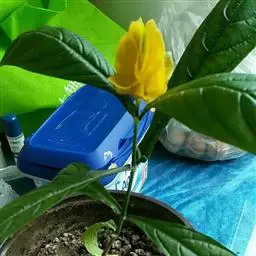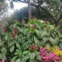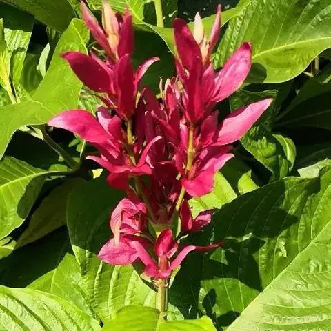 爵床科银脉爵床属常绿灌木,多分枝。叶卵形至卵状椭圆形,长20—30cm,缘有钝齿,叶色浓绿,有光泽,叶脉银白色。穗状花序单生或三出;小花沿花序轴紧密排列成对称的4列。苞片橙黄色,醒目而突出,花冠黄色,二唇状;花期夏秋。叶脉黄色者为金脉爵床。
