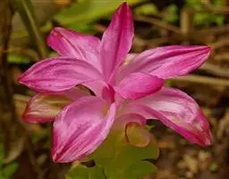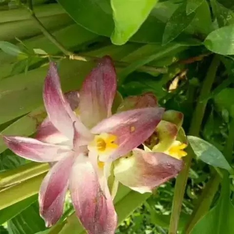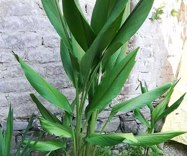 姜黄芭蕉目,姜科、姜黄属多年生草本植物,株高1~1.5m,根茎很发达,根粗壮,末端膨大呈块根;叶片长圆形或椭圆形,叶顶端短渐尖;苞片卵形或长圆形,淡绿色,顶端钝,花冠淡黄色;花期8月。