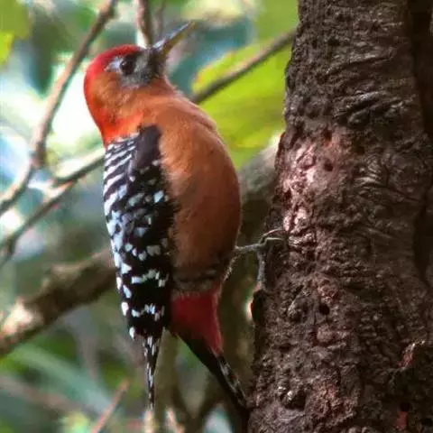 棕腹啄木鸟为啄木鸟科,啄木鸟属是中等体型的鸟类,体长约20厘米。头顶部具红色斑带。脚强健,有趾4个,…