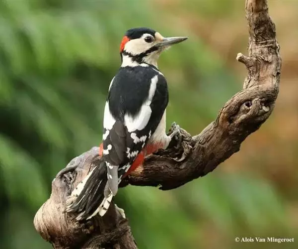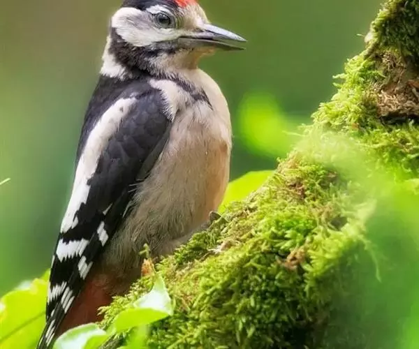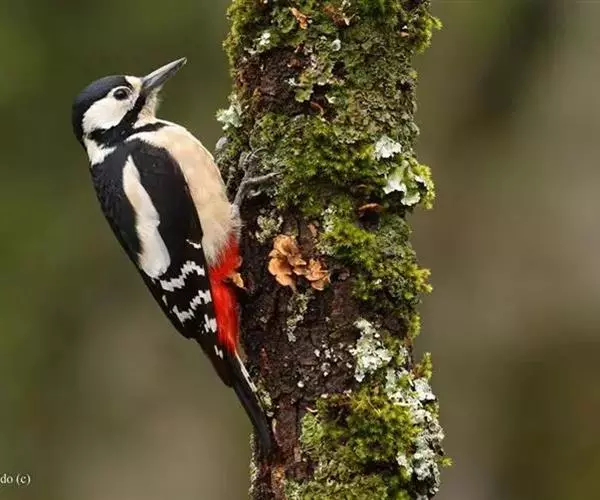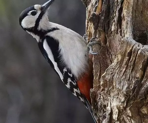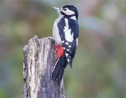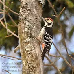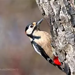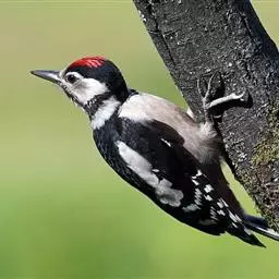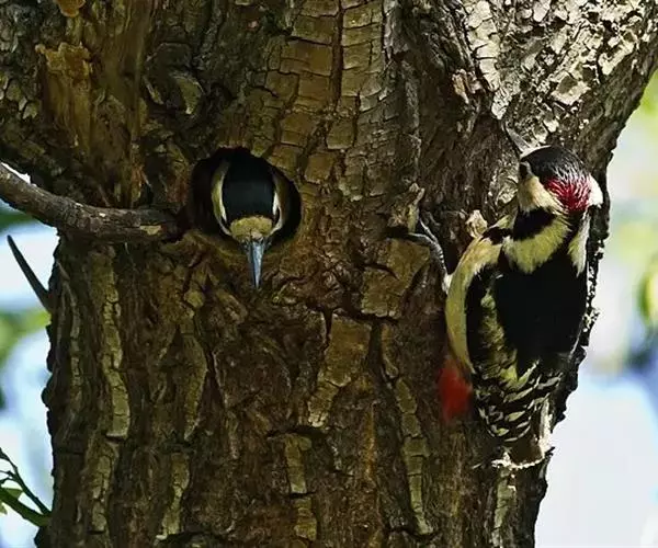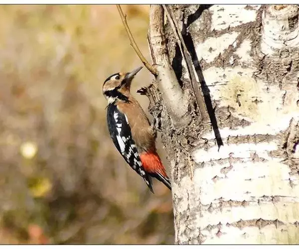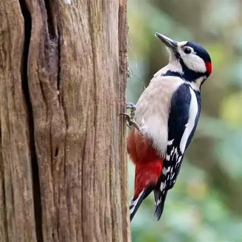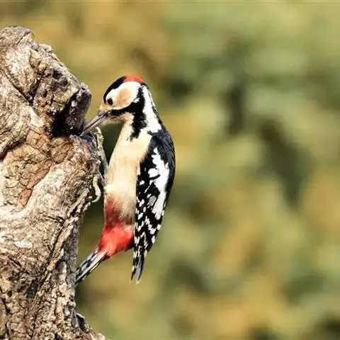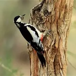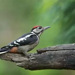 大斑啄木鸟(学名:Dendrocopos major)又名赤鴷、臭奔得儿木、花奔得儿木、花啄木、白花啄木鸟、啄木冠、叼木冠。小型鸟类,体长20~25厘米。上体主要为黑色,额、颊和耳羽白色,肩和翅上各有一块大的白斑。尾黑色,外侧尾羽具黑白相间横斑,飞羽亦具黑白相间的横斑。下体污白色,无斑;下腹和尾下覆羽鲜红色。雄鸟枕部红色。本物种未列入保护目录,但受到非法捕猎的威胁,中医传统理论认为本物种全体有滋养补虚、消肿止痛的功效,刺激了对本物种的捕猎。另外由于本物种喜食很多林业害虫,因此被誉为“森林医生”。有很多机构在研究对本物种的人工饲养和招引,有一些机构还取得了一定的进展。