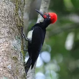 白腹黑啄木鸟,是啄木鸟科、黑啄木鸟属的中型鸟类,体长43-46厘米,头顶具长的红色羽冠,颚纹亦为红色,…