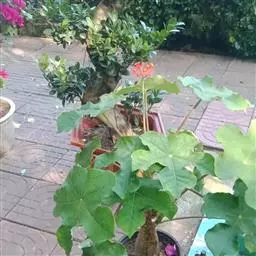瓶干树又名佛肚树,学名是Jatropha podagrica Hook.,瓶干树的原生地是澳洲的昆…