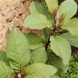 一年生直立草本,高20-60厘米,茎粗壮,有分枝,枝略成四棱形,有灰色糙毛,幼时更密,节部稍膨大。叶片纸质,长椭圆形或矩圆状倒卵形,长3.5-13厘米,宽1.5-5厘米,顶端急尖或圆钝,凸尖,基部渐狭,边缘波状,两面有小斑点、白色长柔毛及缘毛,叶柄长1-1.5厘米,有灰色长柔毛。