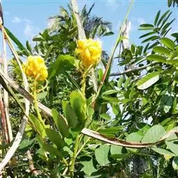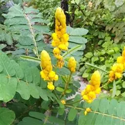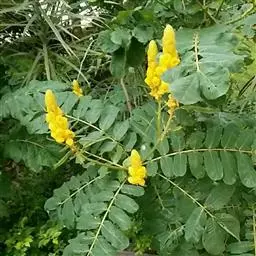 翅荚决明 Roxb.)是豆科决明属灌木植物,高3米。羽状复叶,在叶柄和叶轴上有窄翅;小叶倒卵状长圆形,…