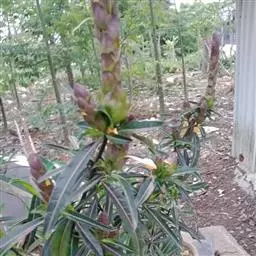 夏季:佛肚树在夏季高温期通常进入休眠状态,对肥水要求不多,甚至要控肥控水。肥水管理按照“花宝”——清水——清水——“花宝”——清水——清水顺序循环;室外养护植株的间隔周期约3-5天,放在室内养护的约4-7天。浇水时间尽量安排在早晨或傍晚温度较低的时候进行。还要经常给植株喷雾。