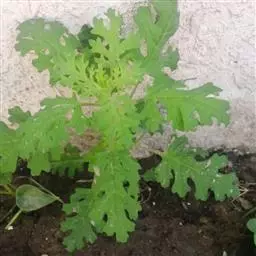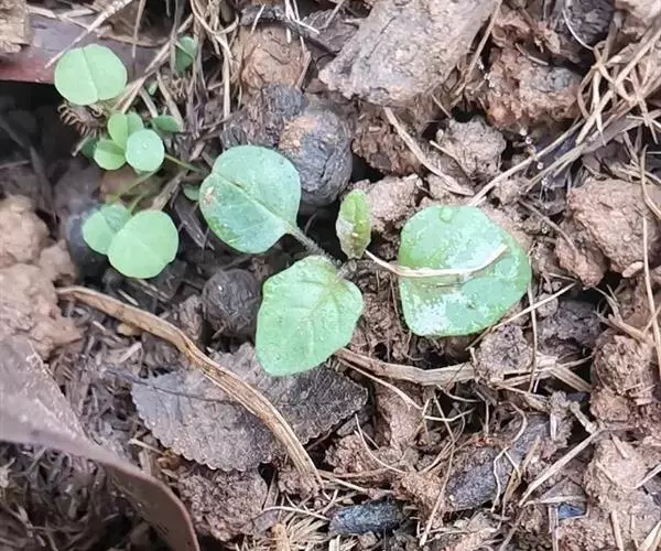 幼苗 子叶1对,长椭圆形,先端钝圆,基部连合。下胚轴发达,上胚轴短。初生叶阔卵形,先端平截,具凹陷,叶基阔楔形,有长柄。后生叶除叶缘略呈波状外,与初生叶相似。