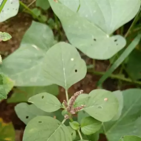 反枝苋是苋科苋属的一年生草本植物。株高达1米;茎密被柔毛;叶菱状卵形或椭圆状卵形,先端锐尖或尖凹,…