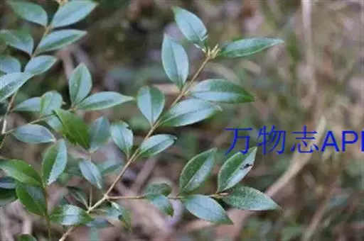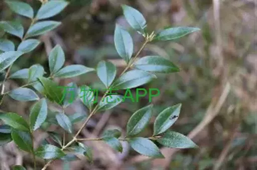 常绿灌木或小乔木,叶对生,,厚革质,深绿色有光泽。叶片从斜方形、卵形到狭披针形颇易变,通常椭圆状披针形或披针形, 长2-5厘米,宽0.9-2.5 厘米,先端渐尖,锐尖的或稍在顶部钝的;两面的中脉突起,正面的可见的侧脉。蒴果约7毫米; 宿存的花柱长约3毫米 。