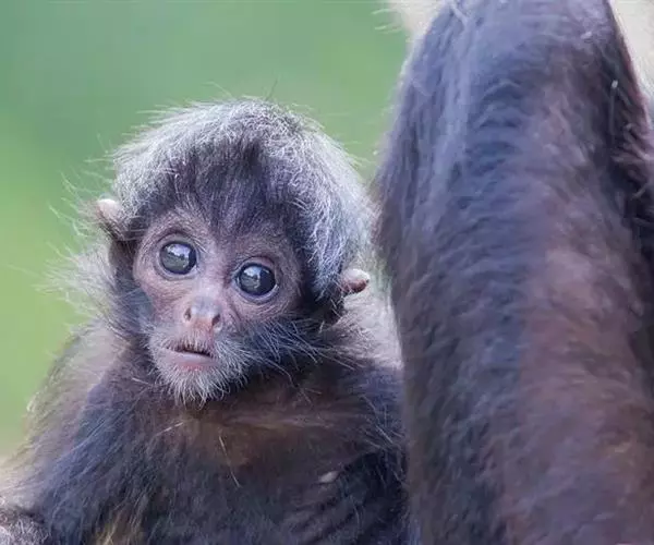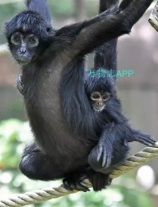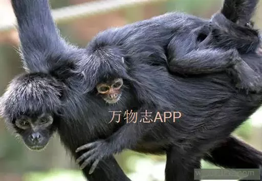 蜘蛛猴的毛相一般以黑色最多,但是也是褐色、灰色的。毛粗略似羊毛。特别是它的形体和在树上爬的动作,酷似一只蜘蛛,故名蜘蛛猴。