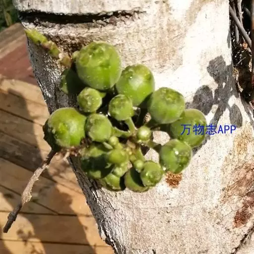 该变种榕果扁球形,径25-30毫米,成熟时黄色,干后常具纵棱,口部苞片莲座状,侧生苞片宽三角形,总梗长5-10毫米。