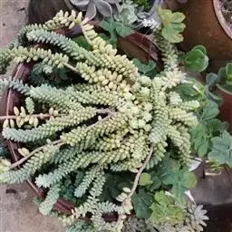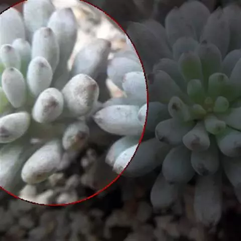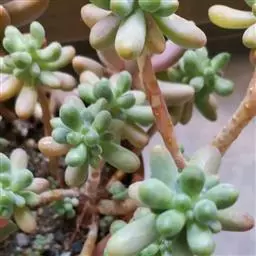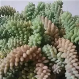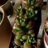玉米石是景天科、景天属植物。多年生草本多浆植物。植株低矮丛生,多分枝。叶膨大成圆筒形、卵形或近小球形,…