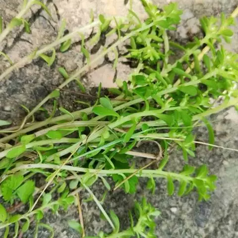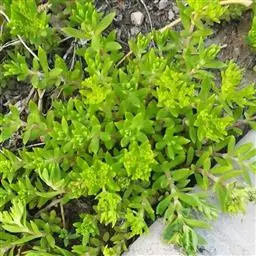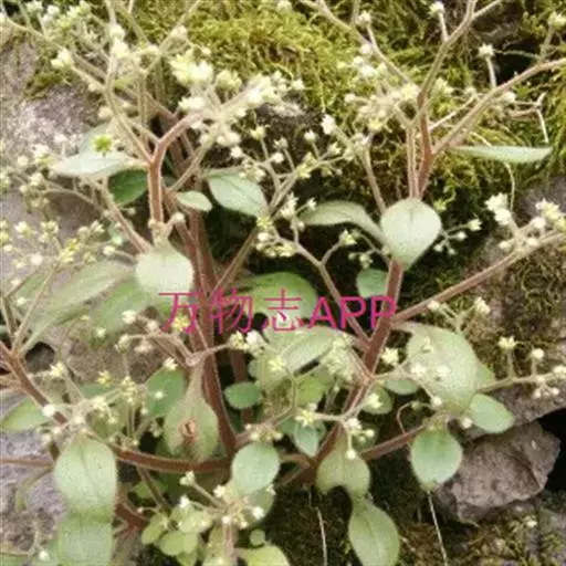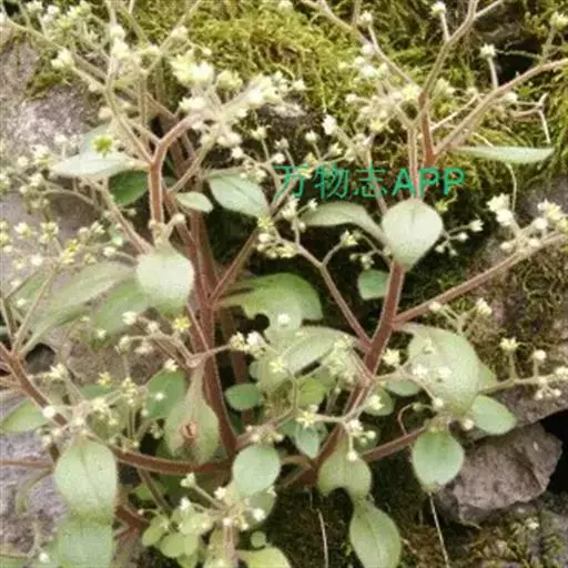 大叶火焰草(Sedum drymarioides Hance)是属于景天科的一年生草本。高7~25厘米。基部稍倾斜,上部有分枝,全株被白色腺毛。茎下部叶对生或4叶轮生,上部叶互生,质较薄,卵形至宽椭圆形,长2~4厘米,宽1.5~2.5厘米,瞢荧果,有多数细小种子。花期4~6月,果期8月。