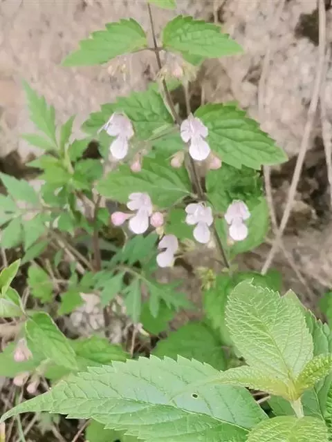 凉粉草为唇形科植物,茎下部伏地,上部直立, 叶卵形或卵状长圆形,先端稍钝,基部渐收缩成柄,边缘有小…