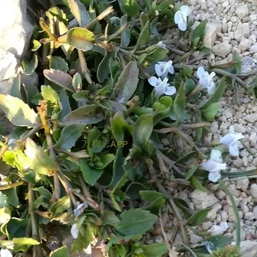 一年生草本,根须状成丛;茎幼时亚直立,长大后多分枝,枝基部匍匐,下部节上生根,弯曲上升,高可达30厘米,茎枝有沟纹,无毛。叶片矩圆形、矩圆状披针形、矩圆状倒披针形或几为条状披针形,长0.3-4厘米,宽0.6-1.2厘米,顶端急尖或圆钝,基部下延有宽短叶柄,而近于抱茎,边缘有少数不明显的锯齿至有明显的锐锯齿或近于全缘,两面无毛。花多在茎枝之顶成总状着生,花序长者可达15厘米,含花2-20朵;苞片钻形;花梗有条纹,顶端变粗,长者可达1.5厘米,花期上升或斜展,在果期平展或反折;萼仅基部联合,齿5,条状披针形,沿中肋和边缘略有短硬毛;花冠紫色、紫白色或白色,长可达1厘米,管长可达7毫米,上唇2裂,下唇3裂,上、下唇近等长;后方一对雄蕊有性,前方一对退化,药消失,花丝端钩曲有腺;花柱细,柱头扁平,片状。蒴果圆柱形,顶端渐尖,长约为宿萼的2倍或较多;种子为不规则三棱状卵形,褐色,有网状孔纹。花、果期春季至秋季。