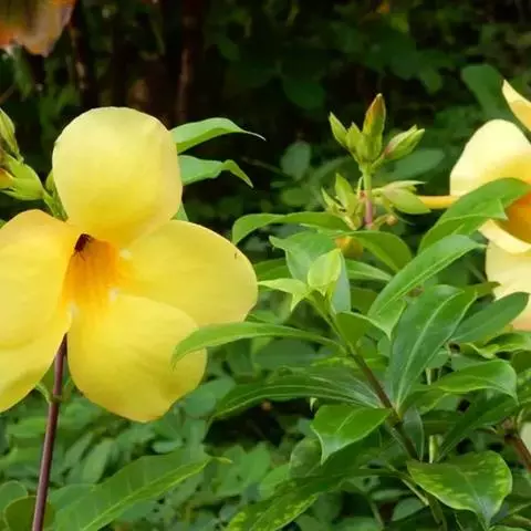 大花软枝黄蝉是软枝黄蝉的一个变种,夹竹桃科黄蝉属植物。藤状灌木,长达4米,枝条软弯垂,具白色乳汁。…