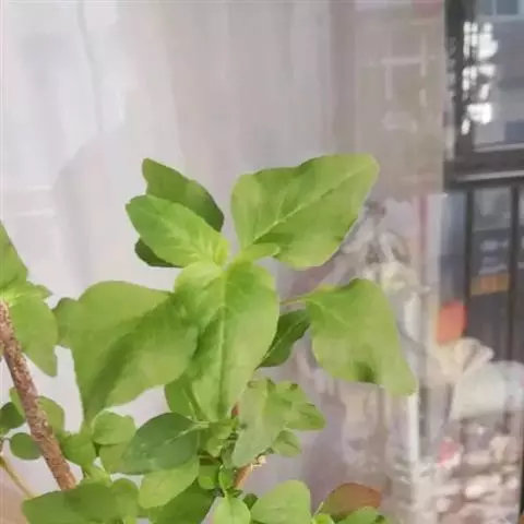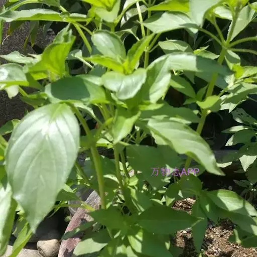茴香罗勒(Anise),茎黑色,叶脉紫色,叶绿色,椭圆形至卵圆形,具茴香气味。