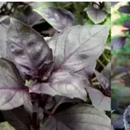 斑叶罗勒:株高及其他特性同,不同点在于茎深紫色至棕色,花紫色,叶片具有紫色斑点。