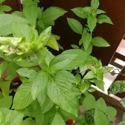 罗勒,是唇形目、唇形科、罗勒属植物,为药食两用芳香植物,味似茴香,全株小巧,叶色翠绿,花色鲜艳,芳香四溢。原生于亚洲热带区,对寒冷非常敏感,在热和干燥的环境下生长得最好。具有强大、刺激、香的气味,大多数普通种类全株被稀疏柔毛,同种、变种或品种在植物学特征上略有差异,高度20~80厘米,平滑或基本上平滑的直立一年生草本植物,一些是多年生植物。有些稍加修剪即成美丽的盆景,可盆栽观赏。