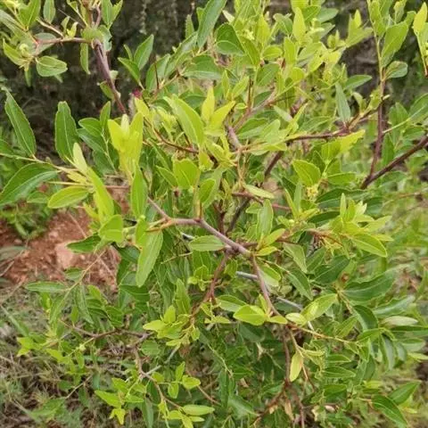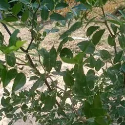枣树 落叶小乔木,稀灌木,高达10余米;树皮褐色或灰褐色;有长枝,短枝和无芽小枝(即新枝)比长枝光滑,紫红色或灰褐色,呈之字形曲折,具2个托叶刺,长刺可达3厘米,粗直,短刺下弯,长4-6毫米;短枝短粗,矩状,自老枝发出;当年生小枝绿色,下垂,单生或2-7个簇生于短枝上。