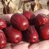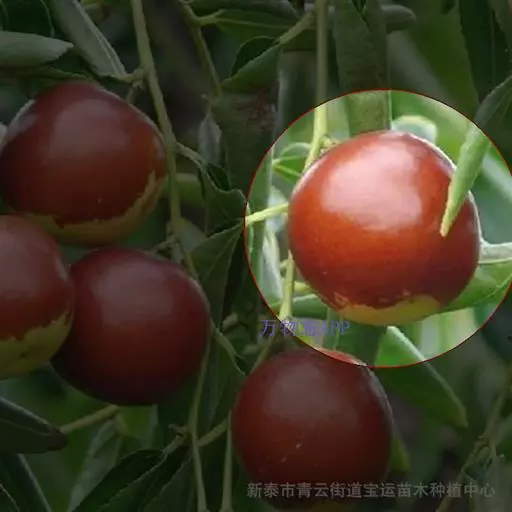 鸡蛋枣 果实特大,近圆形,平均单果重30克,最大50克。果实大小均匀,果皮厚,深红色。鲜枣可溶性固形物含量31%-35%,可食率97%。果肉质细,酥脆多汁,香甜可口。9月中下旬开始成熟,成熟期遇雨不易裂果,耐贮茂,是优良的鲜食、制干、蜜饯兼用品种,旱台地和水地均可栽培。