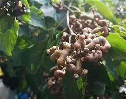 树势极度衰弱,枝条生长衰退,无效枝逐年增多,各类结果枝组和多年生枣头上的二次枝大部分死亡。枣股老化,抽生枣吊能力显著降低,枣头生长短而少,枝条细弱开花少,座果低。